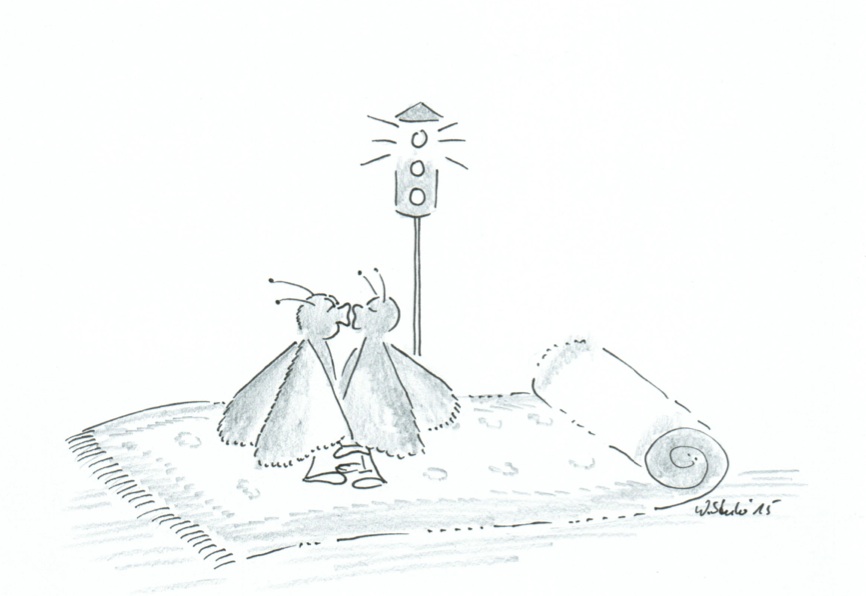 Der Mottenmann. Mir ist, als läge er mit der Mottofee unter der CO2-Ampel [Mottofee ist die Schwester von der mit L- ] und löste mit ihr Milbenrätsel.