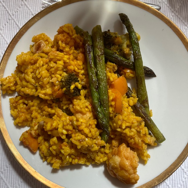 Spargel auf den Reis legen, 5 min ruhen lassen